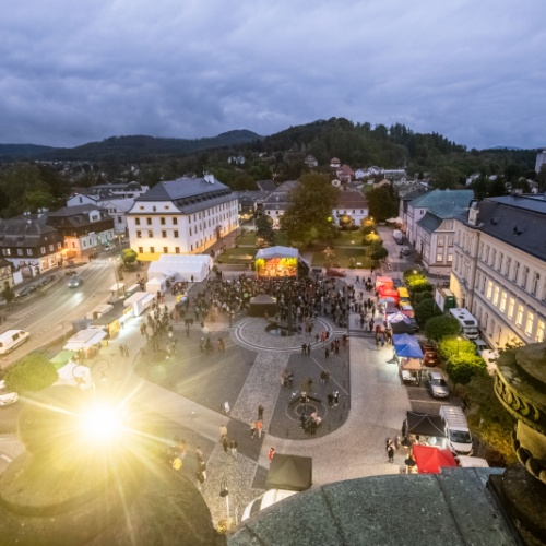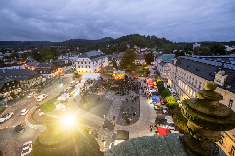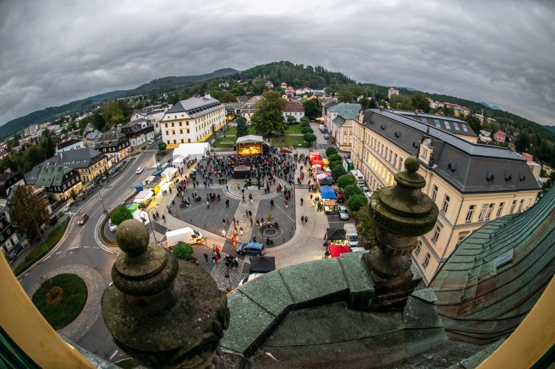 Od 10 hodin budou také probíhat komentované prohlídky v sídle firmy Lasvit na Palackého náměstí, kam můžete dojet i výletním vláčkem. Ten bude každou celou hodinu vyjíždět od městského úřadu z ulice Liberecká.