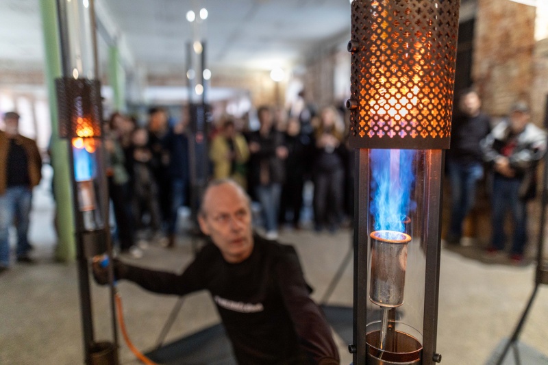 Přijďte zažít unikátní spojení živlů ve sklářsko-hudební improvizační performanci na náměstí v Novém Boru a pochopit hantýrku starých sklářů ozývající se dodnes z verštatů. Cvokajz, burgulec, hefťák a také šel z německého schief jako šikmý, křivý, kosý, šišatý, nakloněný a nesprávný, zkrátka takový, jaký nám vtloukali, že být nemá. Že není v normě, daném standardu, neodpovídá pravidlům a kánonu našeho obyčeje, naší doby. Že se to tak nedělá. Máš to šel jako rozsudek k odsouzení díla do troku.