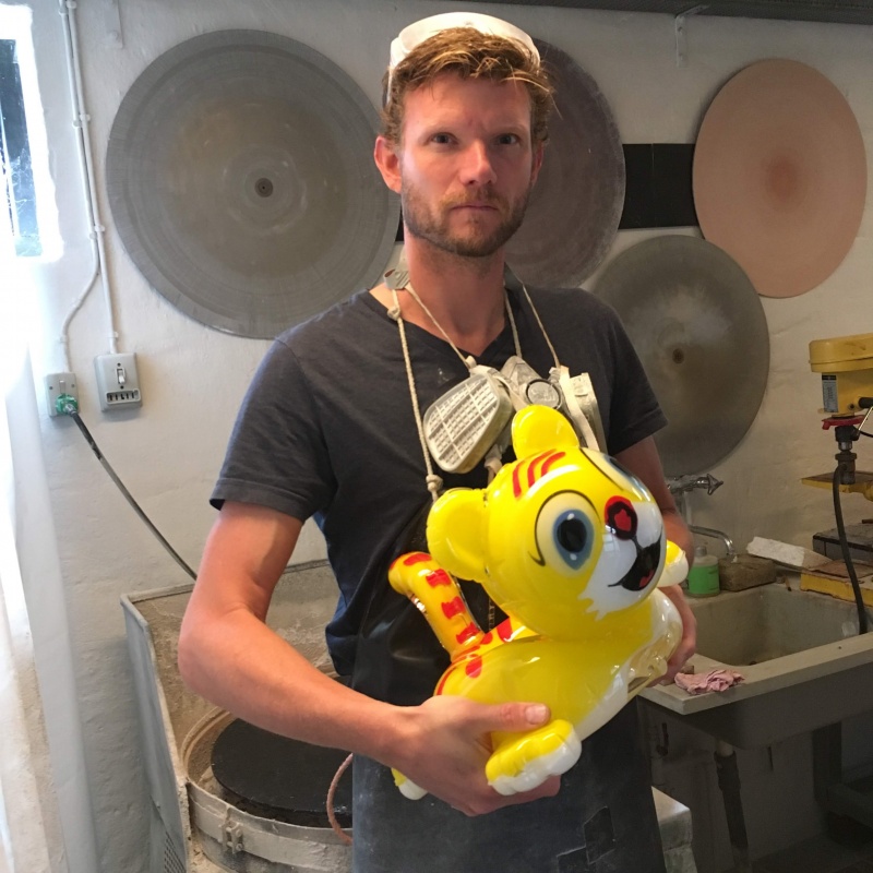Brit žijící a tvořící v Dánsku si vydobyl světovou proslulost svým originálním a neotřelým stylem. Inspirován pop kulturou a konzumem si pohrává s rozporem mezi kýčovitým charakterem křiklavých a laciných předmětů a jejich interpretací – převedením do skla pomocí dokonalého, jemného a sofistikovaného řemesla. Mimořádně zábavné!